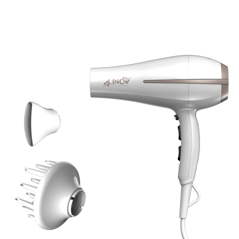 La secadora Bora Lino ofrece secado rápido, menos frizz y mayor brillo gracias a su tecnología cerámica con iones, mientras que la alaciadora Elegance LED Lino permite un alisado uniforme, suave y duradero con control de temperatura para cuidar tu cabello.