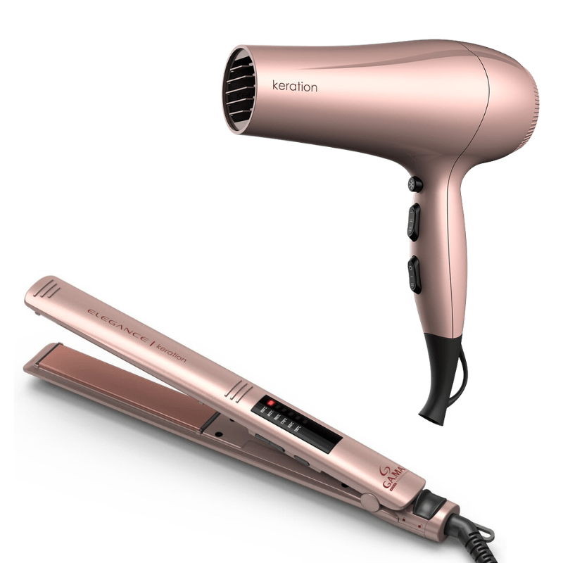 Consigue un peinado profesional completo en un solo kit con el Gama Italy Keration: Secadora 3D Therapy Diva + Alaciadora Elegance LED Keration.